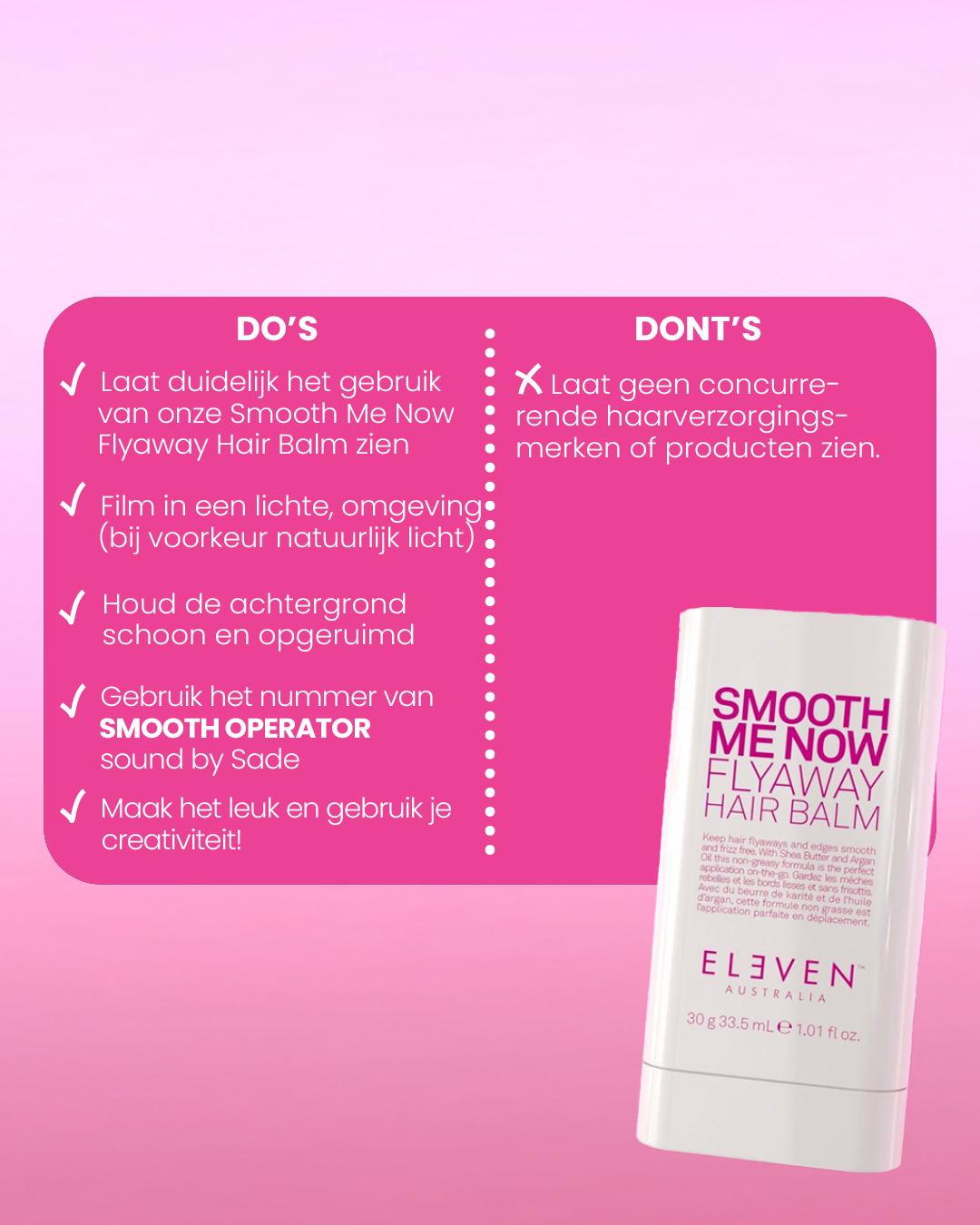 De Reel moet ELEVEN Australia’s Smooth Me Now Flyaway Hair Balm bevatten